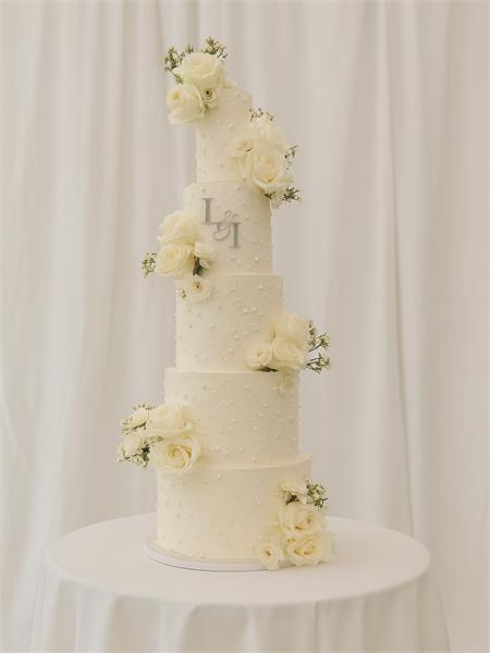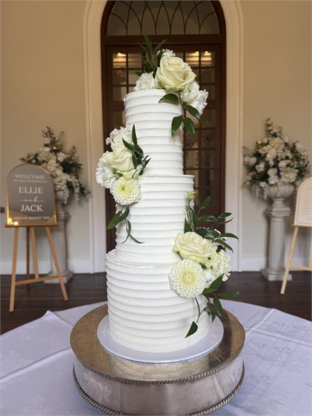 During the Spring and Summer seasons, our buttercream wedding cakes feature a layer of white chocolate ganache beneath the buttercream to ensure structural stability and maintain their pristine appearance.